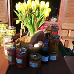 A acomodação de Zwartowko oferece cozinha equipada, bem como sala de jantar para cozinhar e jantar. Além disso, os hóspedes podem desfrutar de comodidades de autoatendimento no local, incluindo chaleira elétrica e refrigerador, juntamente com máquinas de café/chá. A distância ao aeroporto em Gdansk é de aproximadamente 80 km. As opções de entretenimento incluem entretenimento ao vivo e cassino, enquanto as comodidades de lazer incluem solário, terraço ensolarado e área para piquenique. Caminhada, equitação e badminton estão entre as várias atividades que são oferecidas na área circundante.